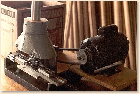 ![]() Cane milling machine #2. This view shows the carriage and pattern going under the cutting head.