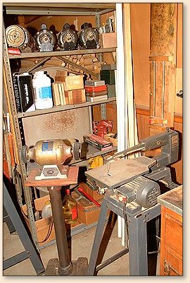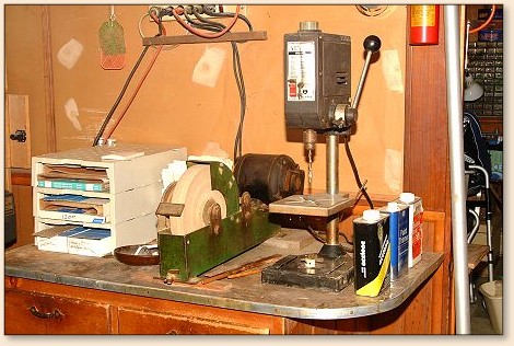 ![]() Drill press and motorized wet stone. Small drill press for light drilling and motorized wet stone. The only way to make tools sharp.