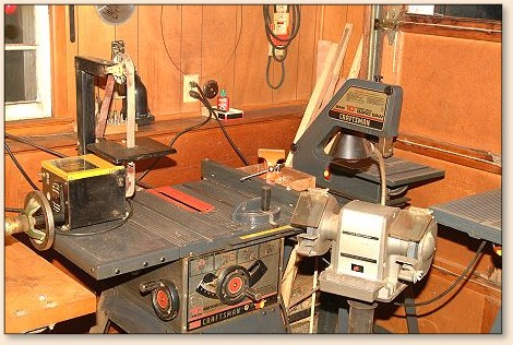 ![]() Shown in this picture is a 1 X 42 inch belt sander, a ten inch band saw, a 3/4 horse power grinder and a ten inch table saw. These tools are not used everyday, but these tools are necessary to have a complete rod shop.