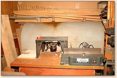 ![]() On the left is a heavy-duty router and table. On the right is a jointer planer. Just behind that is a heat gun. Behind the oil tank are almost seventy, six foot, pre-embargo cane poles. These were purchased from Minei Hull, a very good rod maker who lived in Buffalo, NY. I bought them in about 1963. There are some 2 - 21/2," 21/2 - 3," and some 3 - 31/2" poles. The power fiber in these cane poles is very deep . They are very clean with very tiny nodes. I have only used 3 or 4 of them in forty years. One of these days...