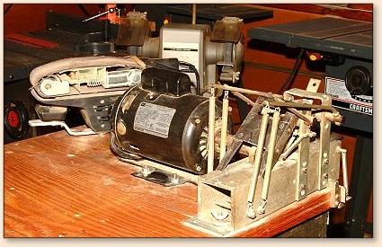 ![]() This small but powerful four inch belt sander is very useful for a variety of tasks. The other machine is a thickness planer, easy to build and will save you time and will improve the cutting of strips. After the cane is split, straightened and the nods dealt with, you put it through the thickness planer and you can take it down to the depth you need plus .010 over so when you put cane through a 60 degree angle miller you have less cane to mill off because it is .010 thicker than the strip you are making.