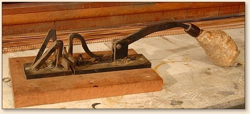 ![]() This is a node presser. Jim Payne gave me this back in the mid 60's as he had made a new one and I have used it ever since. It is mounted on a maple board over an inch thick. When the node presser is in use it is bolted to a heavy work bench.