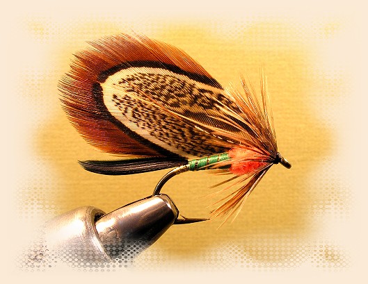 Body: Orange chenille 1/2 fore, green 1/2 aft, gold rid aft, gold tip.