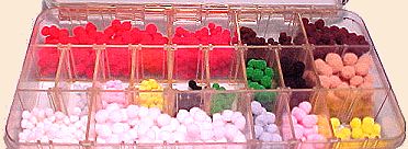 ![]() 7. Add a small drop of zap-a-gap just behind the third pom pom and push on the fourth pom pom.