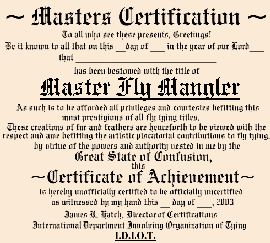 (Wait for Certificate to load, print out, fill in blanks, frame, hang on wall, smile.)