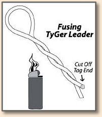This nylon coated braided stainless steel leader material comes in a range of sizes, from spidery .006" 2 lbs all the way up to .037" 120 lbs. Designed for use for the fishing for toothy critters, in both freshwater and the salt, this remarkable leader material is surprisingly supple and can accept most kinds of knots we associate with mono leaders. However, the really cool thing is the ease with which bulletproof loops can be fashioned. "Simply loop the material, and introduce some twist, locking the parallel strands together. Next fuse the twisted strands with the use of a lighter flame. (see illustration)"