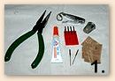 Glue system! I wish I could claim this as a personal discovery or inspiration of mine, but I'd be lying. I originally discovered this in an L. L. Bean catalog 18-20 years ago. They sold a little kit that contained a tube of Super Glue, a piece of emery paper and a small needle vice with needle. I tried the system and found that it really worked. I was impressed the first time I landed a really big trout, instead of loosing the fish to a line/leader separation caused by an improperly tied nail knot. L. L. Bean apparently was not as impressed with the system as I was, because the kit disappeared from their catalog after a couple of seasons. I, on the other hand, found that this new system was so effective that I applied it to all my lines/leader connections. You can put together the necessary items from around the house or with just a short visit to a sewing or fabric shop. Let me take you through the procedure, step by step and you'll see how really simple it is.