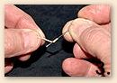 ![]() 1) Gather the tools and materials you'll need. Needle nose pliers, Super Glue, emery or sand paper, nail clippers, sewing machine needles (variety of sizes) and a thimble. ![]() 2) Insert a sewing machine needle into the tip of your fly line. I usually start with smaller gauge needles, gradually inserting larger and larger needles to make the hole larger. This is more difficult then you think --- you may want to use that thimble. Penetrate to a depth of 1/8 to 3/16 of an inch. ![]() 3) Once you have penetrated to the correct depth, break through the side of the fly line with the needle. ![]() 4) Now insert the tapered end (skinny end) of your new leader through the eye of the sewing machine needle. About 4 to 6 inches.