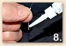 ![]() 5) Grabbing the head end of the needle with your pliers, pull the needle out of the fly line, bringing with it the tapered end of the new leader. ![]() 6) Now, manually pull the entire length of the leader through the fly line. Leaving only the last couple of inches. ![]() 7) Take your emery or sand paper and 'rough up' the trailing end of your leader. Approximately the last half inch or so. ![]() 8) Add a drop of Super Glue to the end of the leader on the spot that you just sanded. ![]() 9) Immediately pull the leader through, so that the part of the leader that you just sanded and applied glue to, goes into the part of the fly line that you penetrated with the sewing needle. Allow it to dry for a few seconds. ![]() 10) Take you nail clippers and trim off any excess leader that protrudes through your fly line. There, you have it. One, very strong line/leader connection, that is as drag free as you can get. Try the system out and I think you'll be as pleased with it's performance as I am. I've been using it now for close to twenty years and I can honestly say that I've never had a line/leader separation using this system. No more nail knots for me! See you on the water. ~ Tom