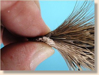 7. Stack a small bunch of dark olive deer hair on top of the