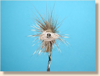 ![]() 16. From the top your fly should now look like this. If it looks right, and no further trimming is required, cement the head and knot very well with strong, penetrating head cement. Soak the hair fairly well so the head will retain its shape after rough use.