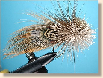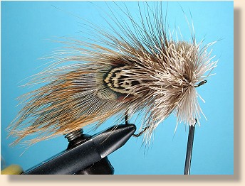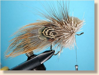![]() 6. Spin the first bunch of hair fully. (NOTE: If this is beyond your capabilities or you don't understand what I mean, go back and follow the intermediate series, especially the patterns that have hair spinning and stacking in them. This is an advanced series and I assume that you are capable of beginner and intermediate procedures when I write this text. The full explanation of these procedures is in the Intermediate Series starting with Al's Hopper and continuing through all the hair head bass flies.)