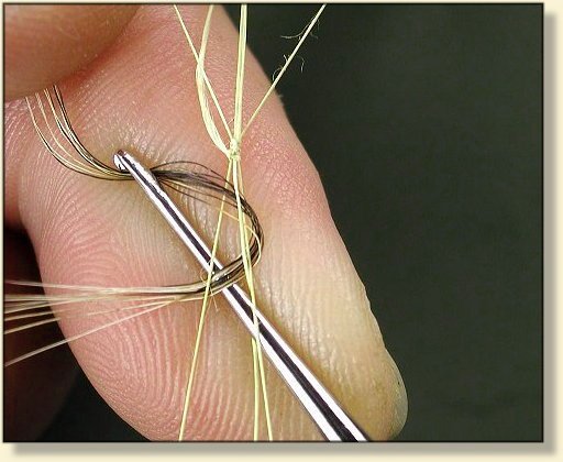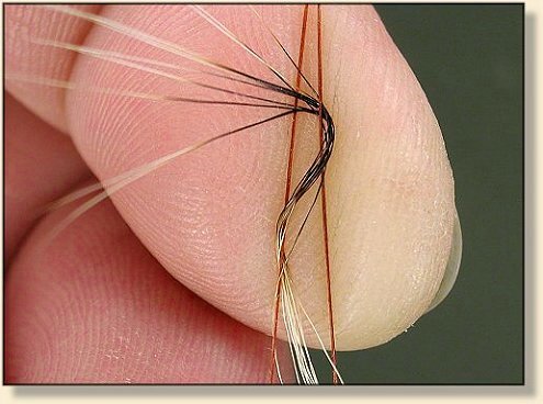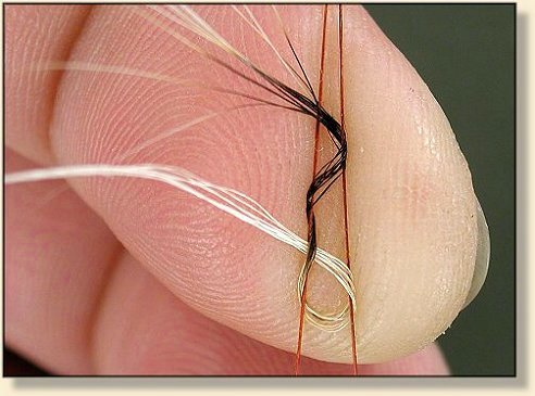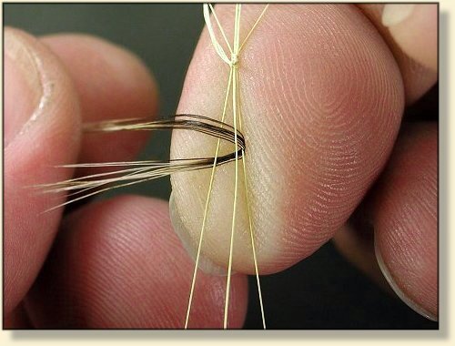 of weaving hair into a string of hair hackle. Knowing that even with a