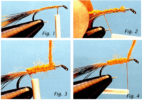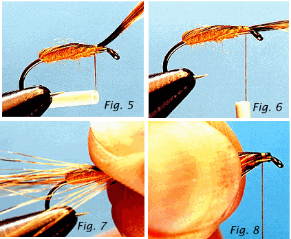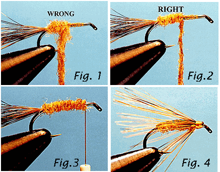 ![]() When you dub a body, select half the amount of dubbing you think you will need, cut that in half, and then you'll only have twice as much dubbing as you need to twist around the thread. Keep the dubbing sparse and add more as needed. Dub the body to the same point you wrapped the no-dub. Finish the rest of the fly in the same manner you did the last one.