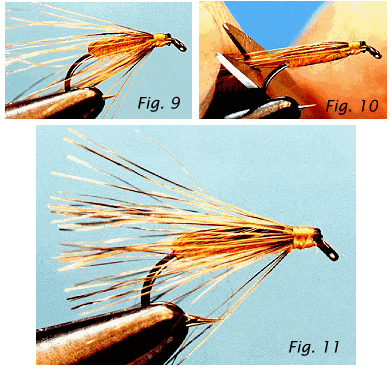 ![]() Dub a thin body to the same place on the hook as before. Pull the hair over the back and finish the fly as before. Notice the different color the badger hair provides? Changing where you select the hair from on a skin or tail will often change the color or shade of the hair and the resulting fly.