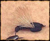 Wing: Tie in by the butts a cleaned and stacked 3/4-pencil sized clump of light elk hair a bit in front of the lower thorax strip (bottom side). The wing's tips should be even with the hook's bend. Secure and cover the butts with tying thread wraps. Advance the tying thread to within 1/8" (3mm) of the hook eye. |