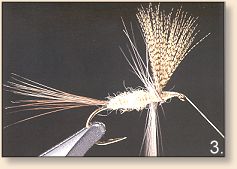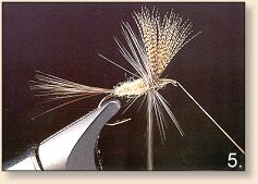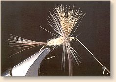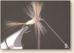 6. Crossing hackle forward beneath the fly.