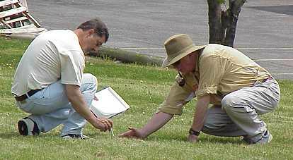 Allan Thomas (above left) and Chris Marshall (above right) measuring an