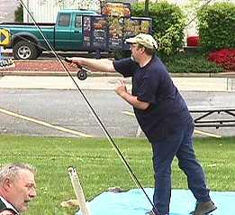 JC (above left) trying the nine weight, and Mike Grinst, with one of his