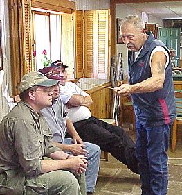 shows Ron discussing the finer points of a rod with, left to right, Bob Petit from the