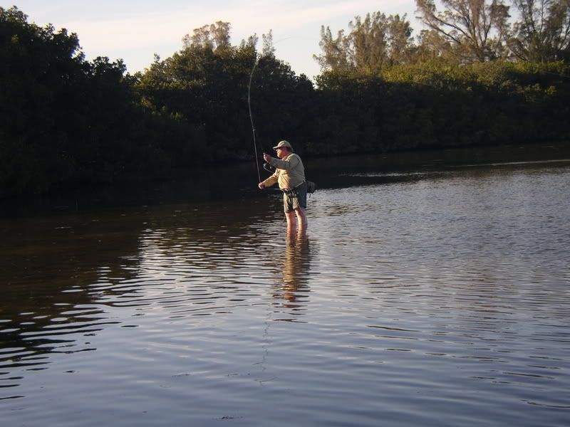 Mark, fly fishing friend extraordinaire; got into southwest Florida about noontime last Friday after starting a couple of hours drive in the pouring rain to BWI at 3:30 in the morning to catch his flight. We pre-fished Snook Alley that evening with Kevin of Casey Key & had plenty of casts to the intended catch, but only hooked one snook out of who knows how many in the 20 knot winds & sea fog. We finally called it a night around 12:30 AM ! Saturday we pre-fished Lemon Bay flats with temps getting into the mid 80’s. Lots of mullet jumping, pods of finger mullet & glass minnows along with gobys made it look like a feast for any game fish that ventured onto the flats! Only a ladyfish was caught out of all the bait that was getting busted on the water. Thunderthumbs had called & met us as we were leaving for the evening so he would know where to fish the next morning & he hooked up with a pompano, rat red & a ladyfish Sunday before the picnic. More to come… 8)