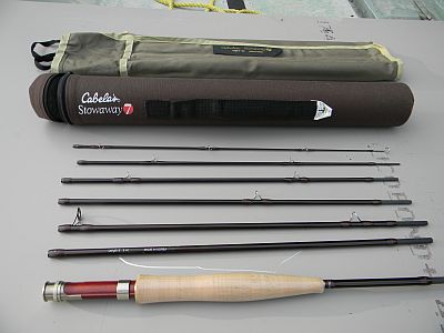 The second a Cabela?s Stowaway 7 ? 7pc ? 5wt ? 9? ? with sock and cloth covered tube ? rod has never been fished ? plastic wrap still on cork handle. - $75 plus shipping