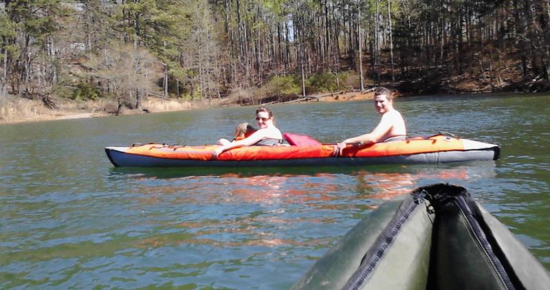 Here is my son, his significant other, and my grandaughter in my Advanced Elements Convertible inflatable, also on Carter’s Lake.