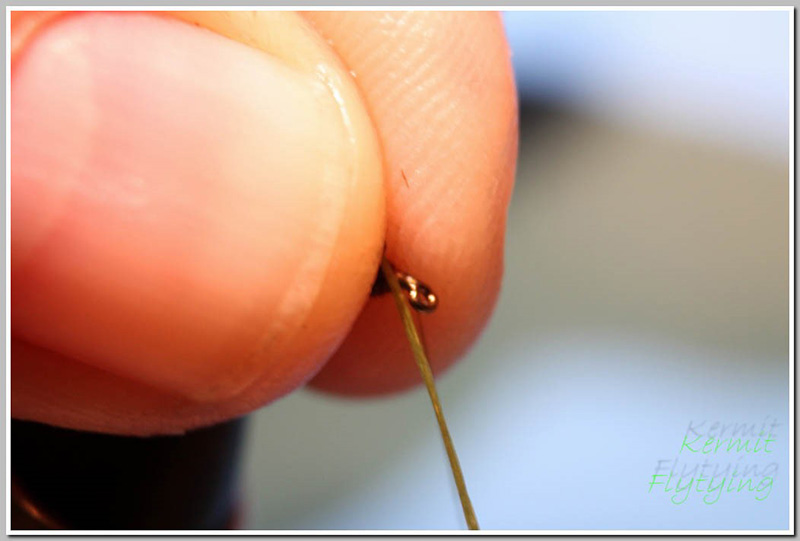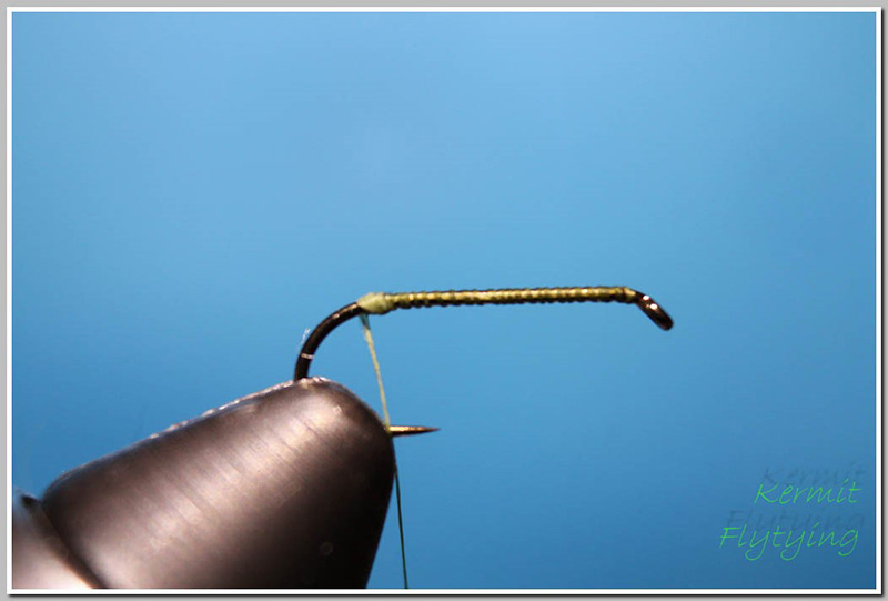 Put on your tying thread and make at the end of the shank a small bulge with your tying thread