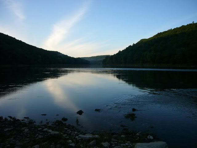 Finally, the sun setting on the Allegheny after a long day. Believe it or not, we were all asleep by 9 p.m. You can tell how old we are.