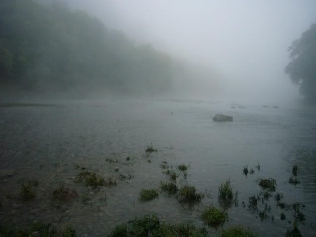 The morning was gorgeous as the river was wrapped in fog. There’s something magical about this kind of wakeup call. It’s also neat when the smallies are hitting at sun up. Not pictured is breakfast consisting of eggs benedict, Cowboy Coffee, milk & orange juice.
