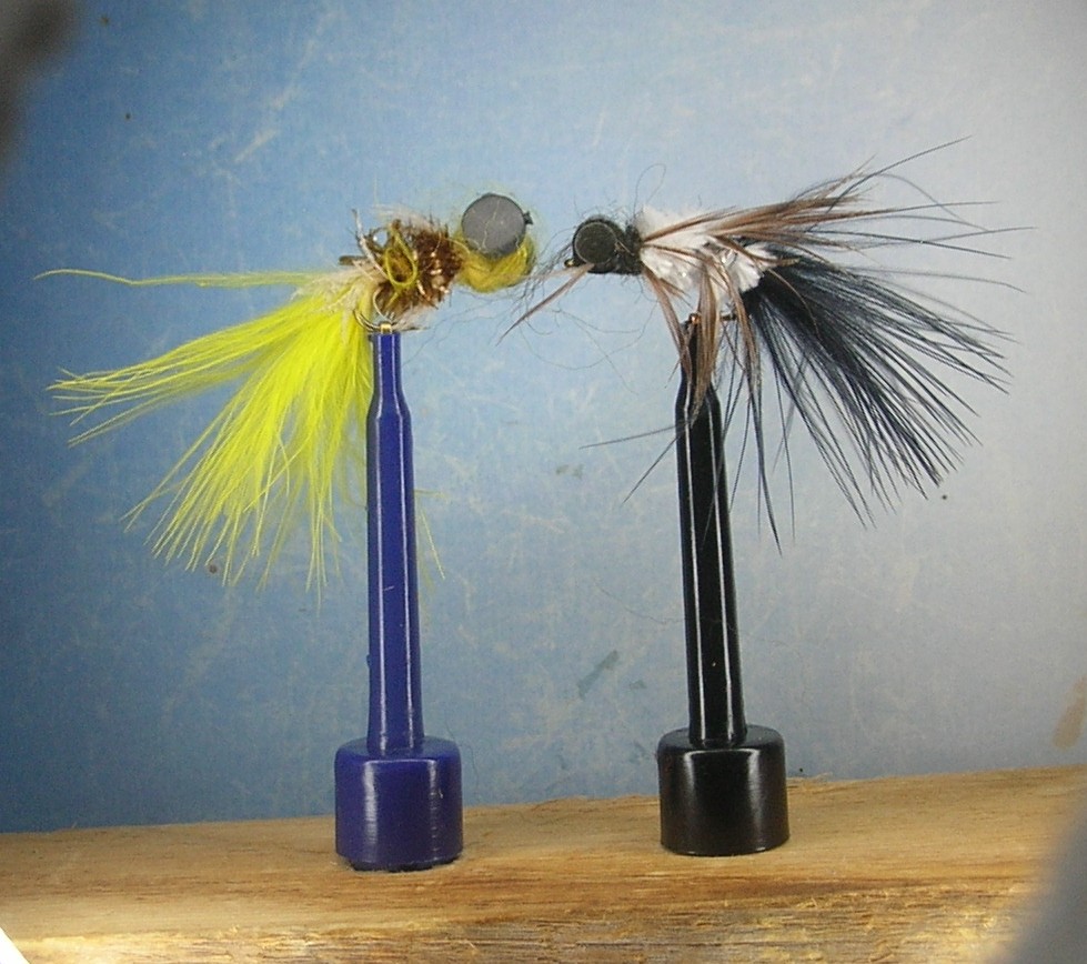 dumbbell eyes, marabou tail, soft hackle, cactus chenille, soft hackle