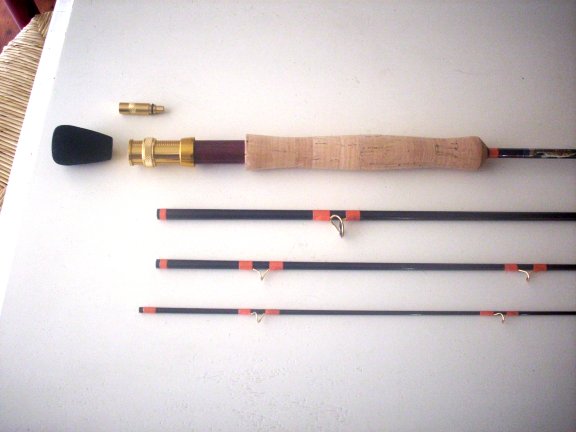 The rod is an 8 ft 5/6 weight with a fighting butt. I bought the blank & hardware on EBay as a kit. For some reason nobody was inclined to bid on it and I got it for 20 bucks to include shipping. I asked the seller if it was a 2d or what and he said he was the son of the owner (Sevier) and the rod was A-1. It even came with the spine marked. Iit casts either a 5 or 6 weight line real nice.