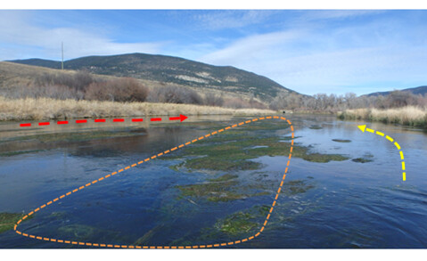 Aquatic weed-beds growing out from the bottom of spring creeks are one of iconic items of fly-fishing scenes. Aquatic weeds dance as the creek flows and the beds host many food sources for trout. But also weed-beds cause micro-currents and make “chutes” between them. Both of which make the fishing spring creeks very challenging and technical!!