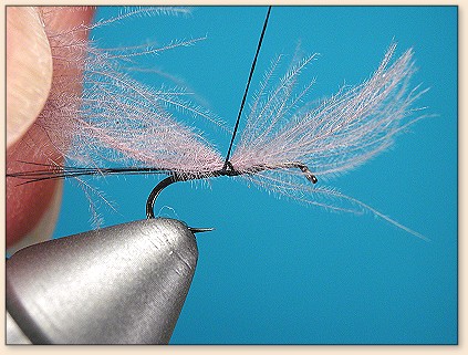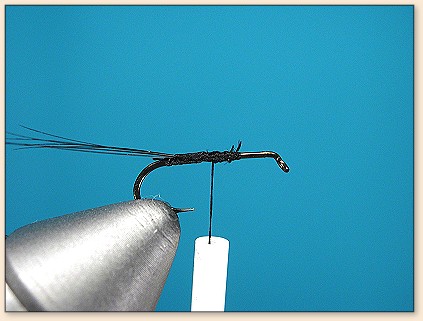 I’m using a size 16 Mustad 94840 dry fly hook.- Tail: Dark dun hackle fibers.