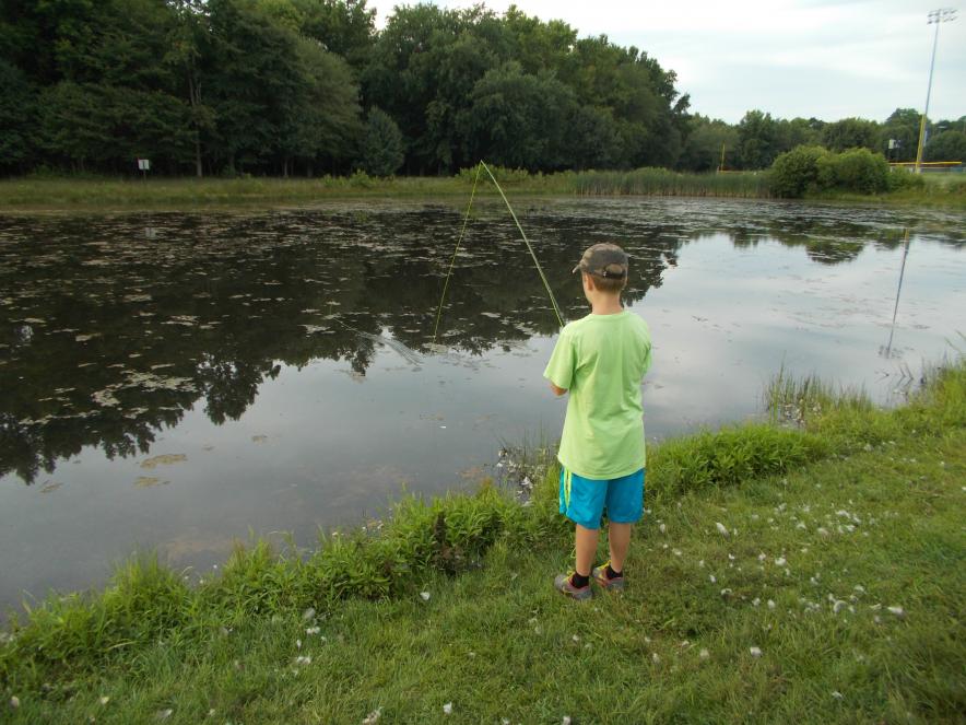Last night my youngest son and I were able to break away for a little bit of bass bugging on a local pond. It was his first taste of bass on the surface, and I think he may be hooked.