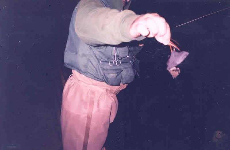 Here is a Bat I caught a couple of years ago. I was trying to grab my fly when he beat me to it and hooked himself. Lucky it was a big streamer and a barbless hook, my buddy took a picture and then all I did was turn the hook up so he would fall off. It just hooked him in one of his wings, I presume he lived, he flew away anyway.
