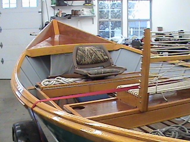 Storage beneath all three seats and under the front deck. It has a cut out for a small outboard if wanted. comes with a original drift boat trailer with rear roller. Asking $2500. E-mail is kegill1@msn.comprice change