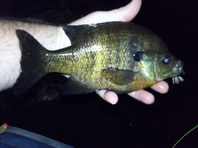 Tonight A local lake gave up some bass, along with this 10" lip-to-Tail gill.