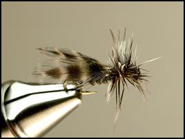 Wing: Grizzly Hen Hackle Tips, tied