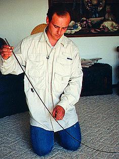 do this, place the tip of the rod blank on the floor, hold the butt end