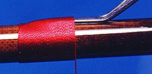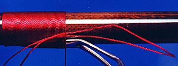 on the bottom section of the rod."To start the wrap, wind the thread