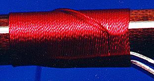 Continue wrapping the thread up to and onto the foot of the guide."You must keep thread tension reasonably tight to ensure a solidly