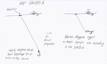 I often apply this method when dead-drifting dry-flies is not producing or simply hard to see during BWO and midge hatches (of course soft-hackles can be fished dry and dead-drifted but that has to be discussed in different articles).