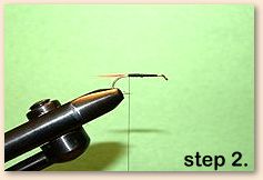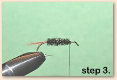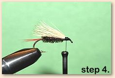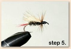 1. Tie in the Furnace Hackle, whip finish and apply head cement.