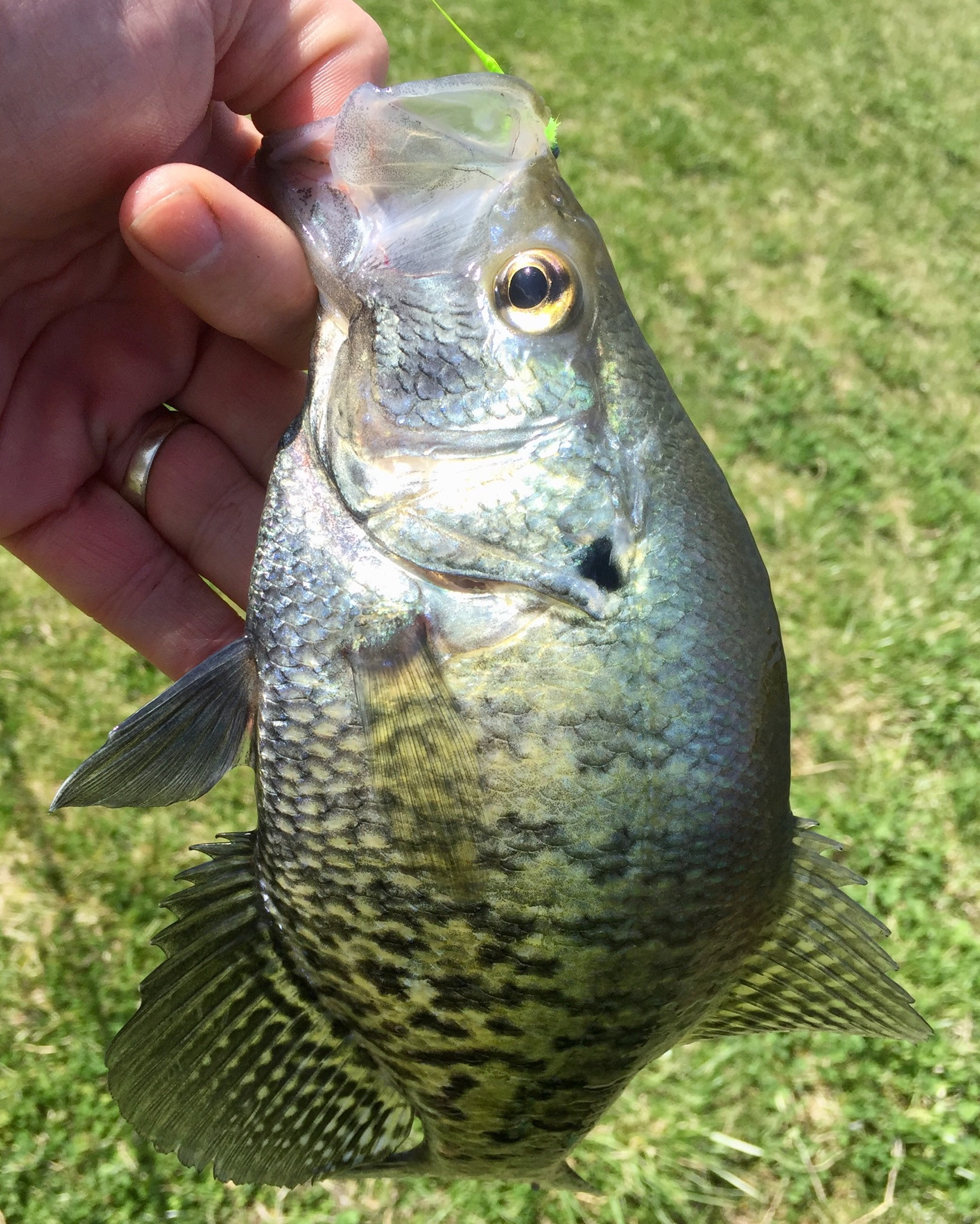 First time fishing this pond this year. The plan was to try for carp. Saw some nice bass, some are starting to nest. Caught a couple crappies, so I switched out flies to target those crappies. Caught Black Crappies and White Crappies. Some were males in spawning colors and guarding nests. Others were females caught a bit further out from shore.