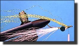 case white bucktail) first behind the hook eye, then behind the eyes as