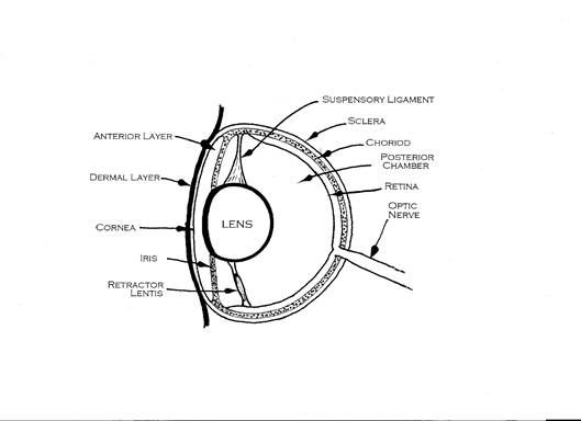However based on the physical evidence and observation we can make a few common sense assumptions which are hard to dispute. The fact of the matter is that we know from the physical evidence how the eye of the trout is constructed and when compared to the eyes of other organisms including the human eye there are a great many similarities. The scientific data on these similarities are fact and I could spend time laying out this evidence which would take many pages. However I fear that many would find this boring and soon fall asleep. Therefore I will offer a diagram of the trout’s eyes which is labeled to the critical aspects of the eye.