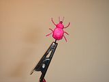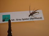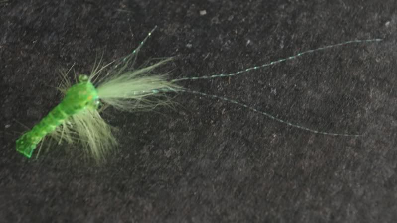 Andres wins the prize for the first flies back to the meister. i picked them up from him at the International Fly Tying Symposium last weekend. he ties amazingly life-like flies, so even if they are bright pink, doesn’t this one look like it would crawl away if we let it? Thanks, Andres!