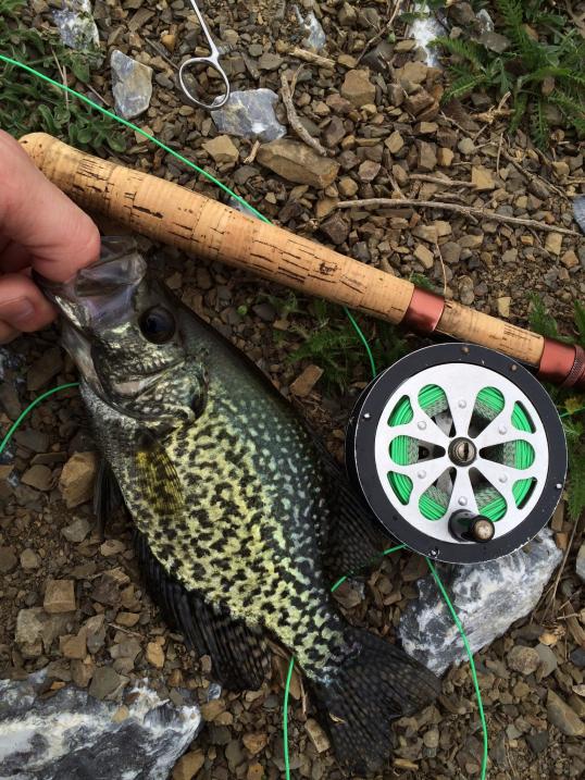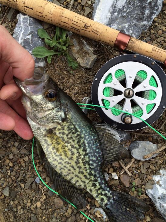 Chartreuse Estaz Beadchain minnow with old Fenwick 7.5 foot 6 wt - 1954 Pflueger Sal-Trout (the ORIGINAL large arbor) and Cortland 333 WF6F line. I’ve caught more fish on this rod since 1973 than all my other tackle combined. She usually makes her appearance once or twice per season. Thousands of Bass, Trout, And Panfish on this rig over the years!