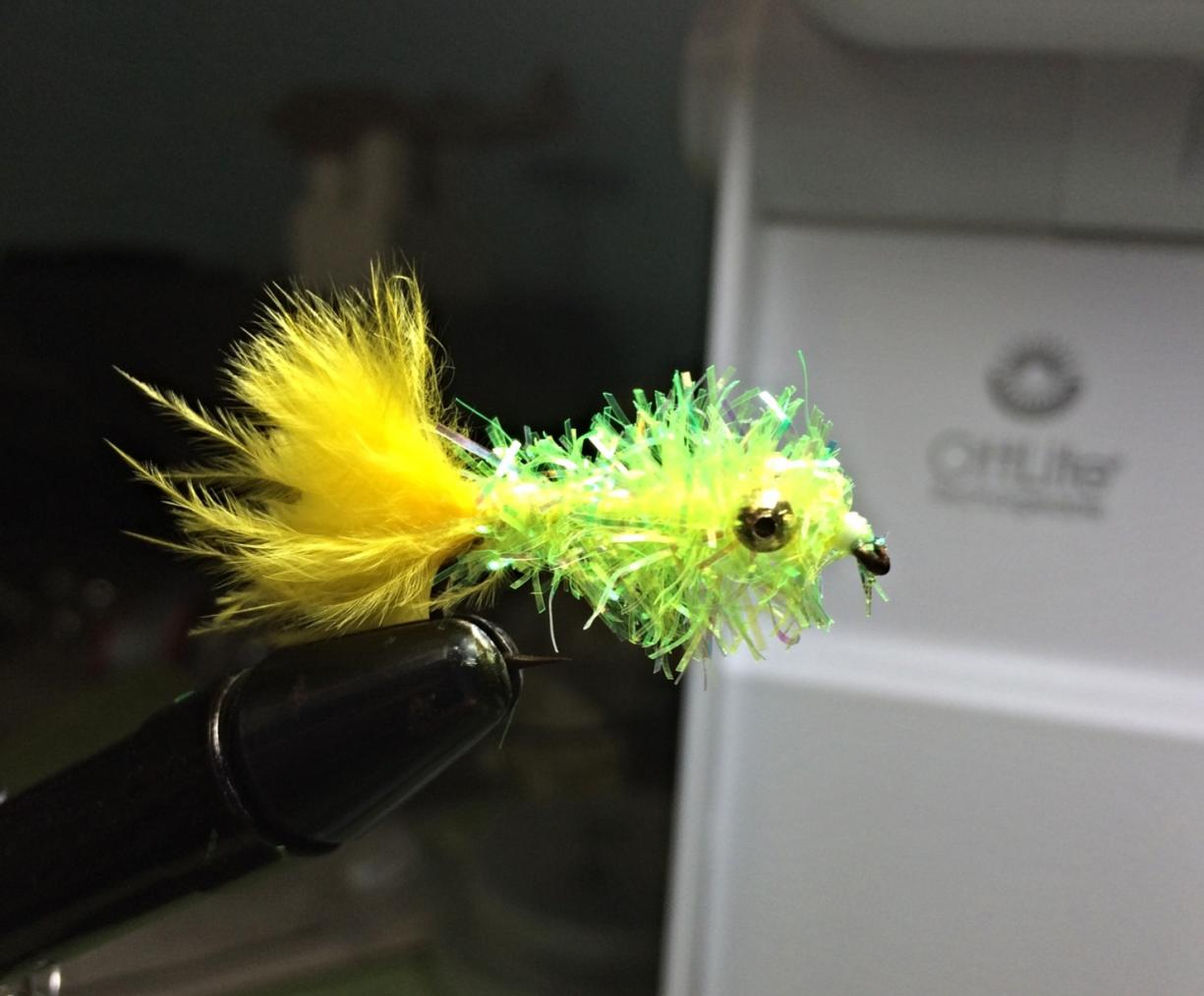 Great. Fly ingredients? Chatreuse Estaz, Yellow Marabou? What size hook and bead chain eyes did you tie on? I’m looking for something simple and I like it.